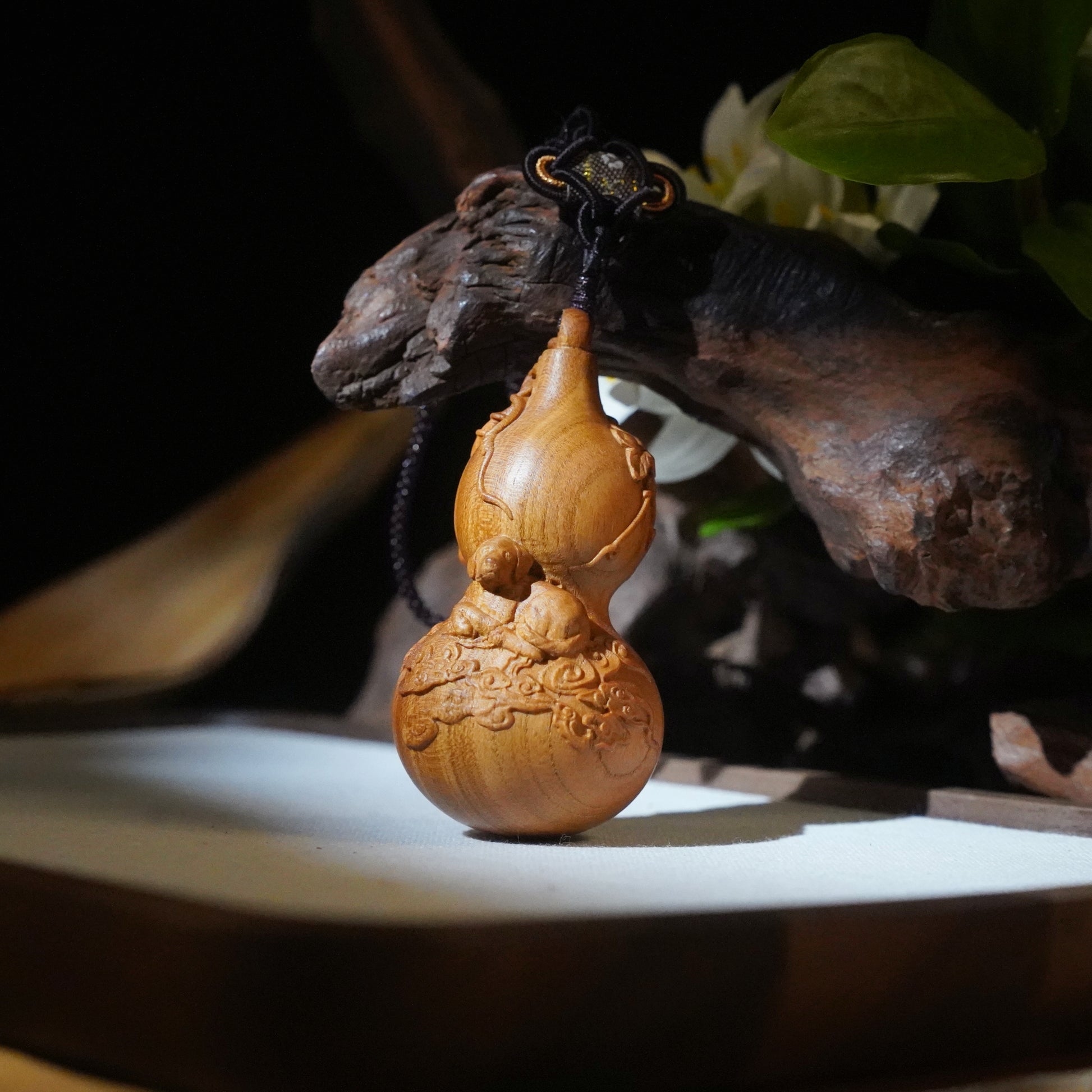 Sichuan peach wood: Also known for "dragon-subduing wood” or “ghost-repelling wood,” peach wood has been used since ancient times to ward off evil spirits, subdue ghosts, protect homes, and avert disasters. Historically, it was used to make protective charms. According to legend, the divine tree that Kua Fu threw when he was dying turned into a peach forest, symbolizing protection and divine power. Its resilient texture is not only suitable for intricate carving but also imbues each gourd with unique cultural and spiritual significance.