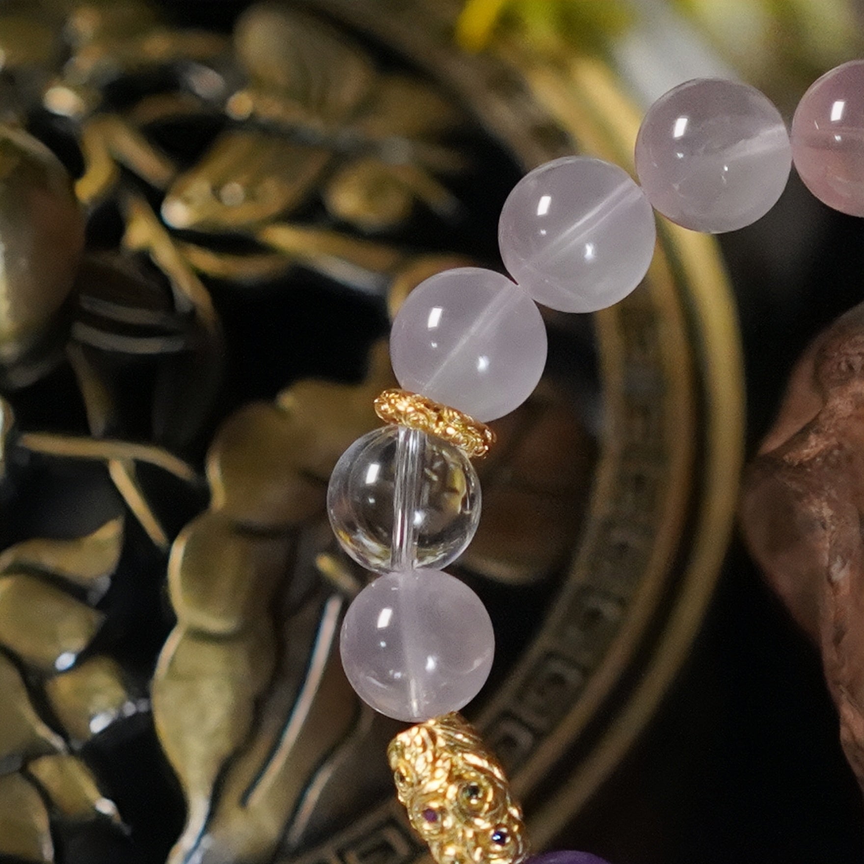 | Amethyst | Rose Quartz | Clear Quartz | Blue-Red-Green Diamond Nine-Tailed Barrel Bead | Twin Flames Teardrop Charm | Auspicious Cloud Movable Ring | Gold Bead |