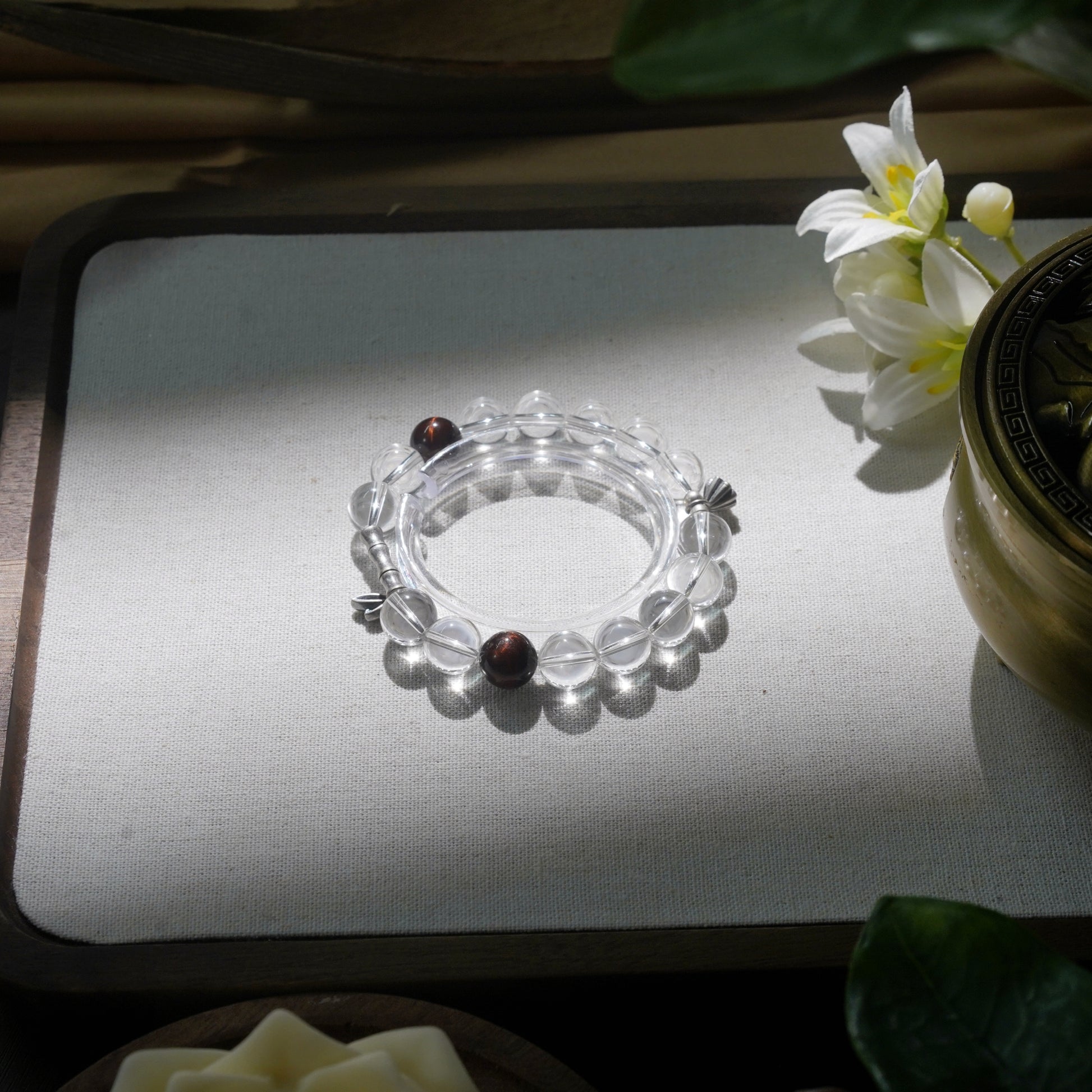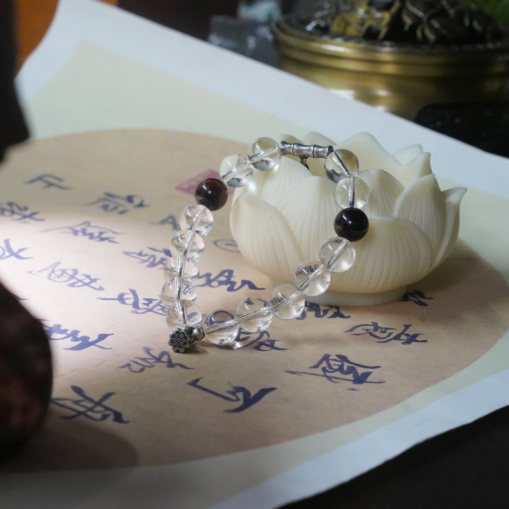 | Red Tiger's Eye | Clear Quartz | Silver Bamboo | Lotus Pod |