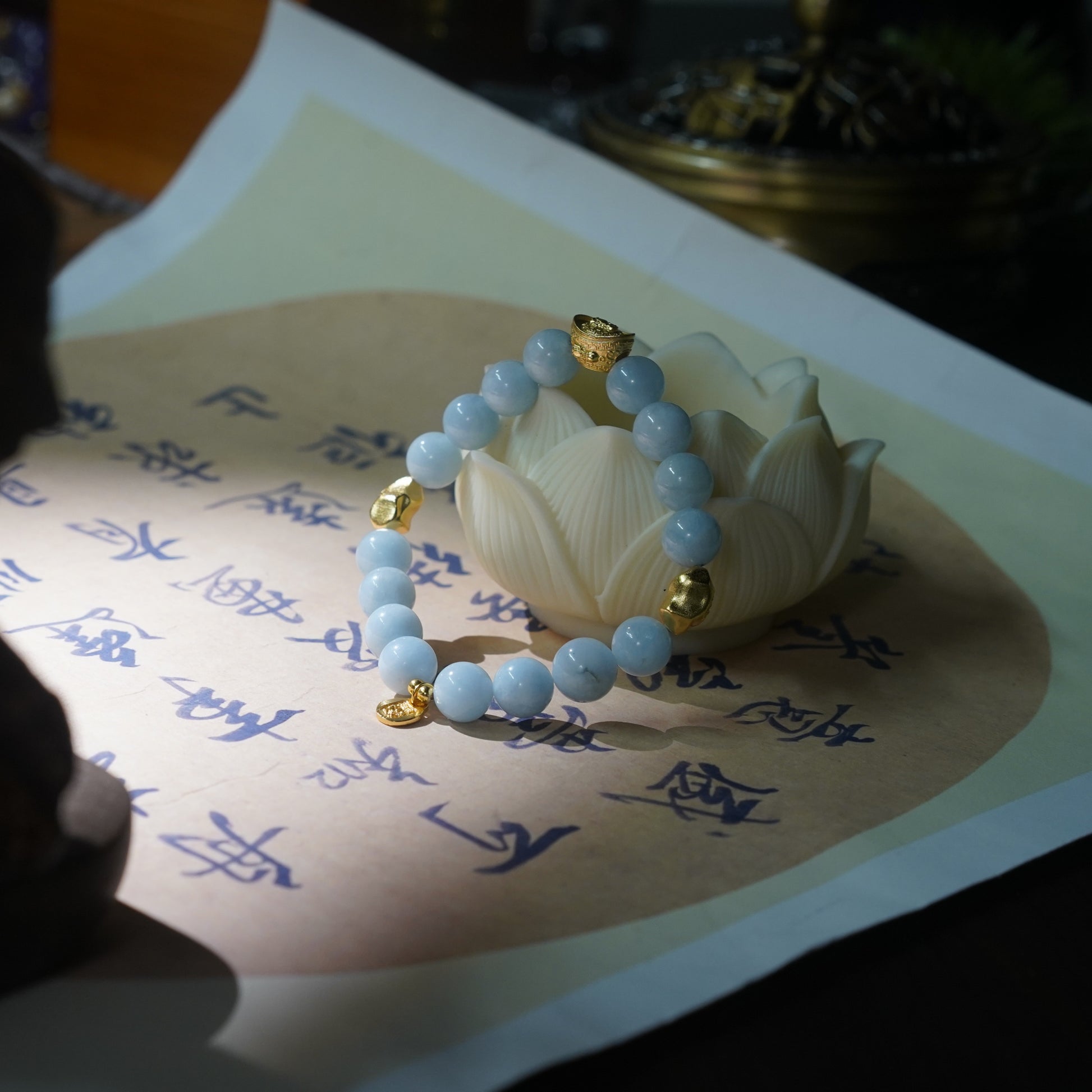 | Carrying the serene clarity of the ocean, it bestows calm intuition, emotional balance, and tranquil communication. | The design of the Gold Ingot is derived from the "gold ingots" that circulated in ancient China, serving as a tangible symbol of wealth. |
