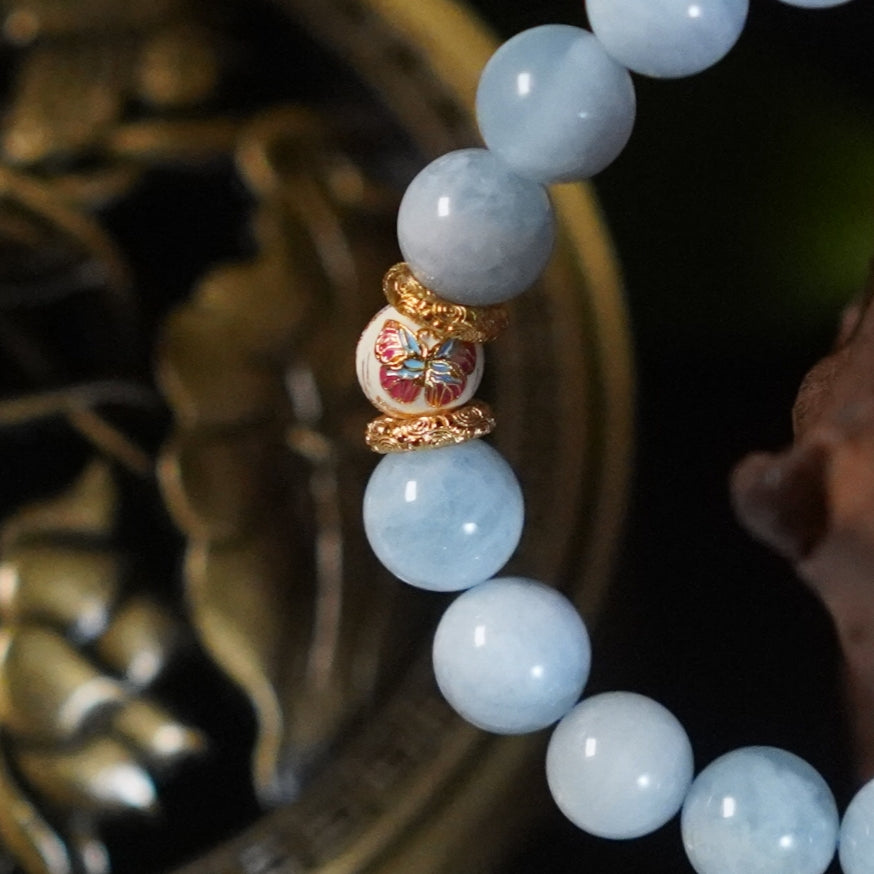 | Aquamarine | Butterfly Five-Strand Mantra Bead |