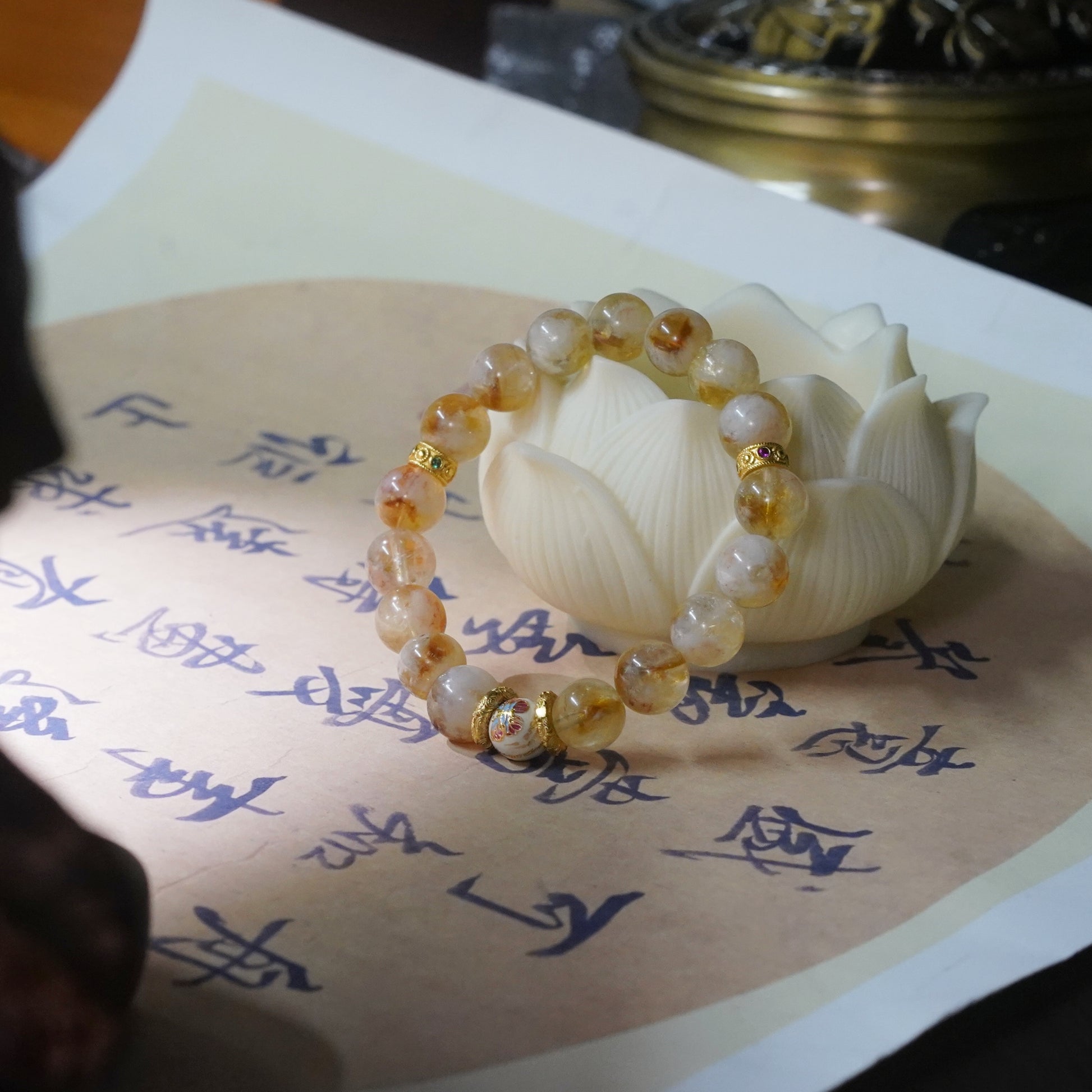 | Feathered Yellow Quartz | Butterfly Five-Strand Mantra Bead |